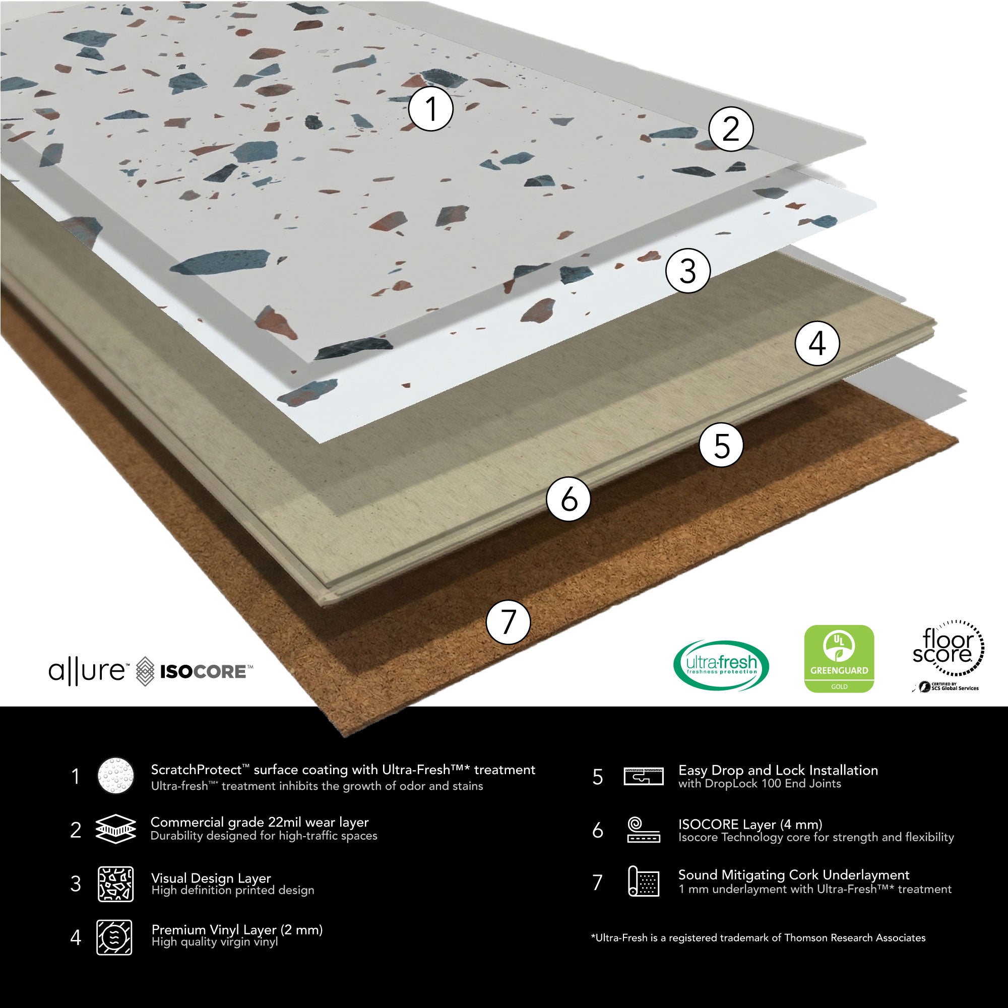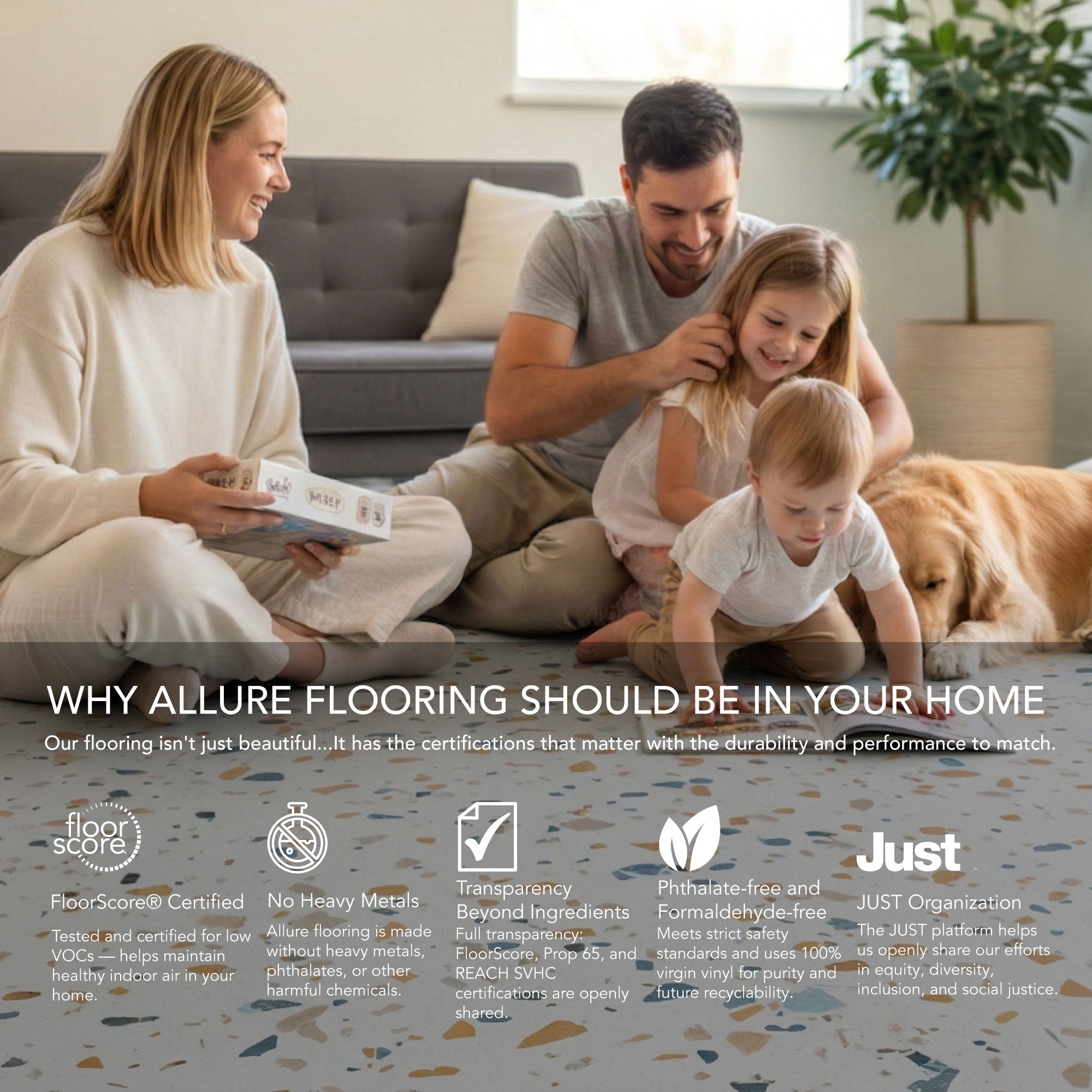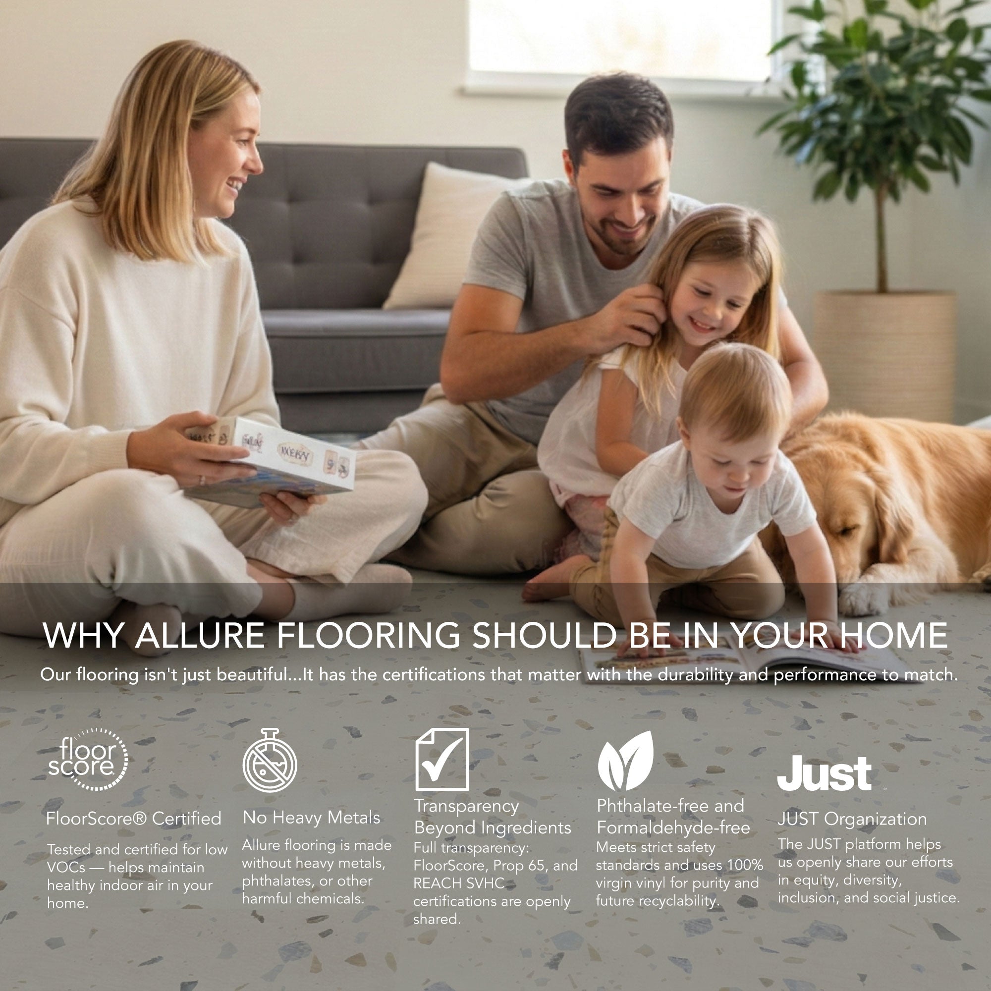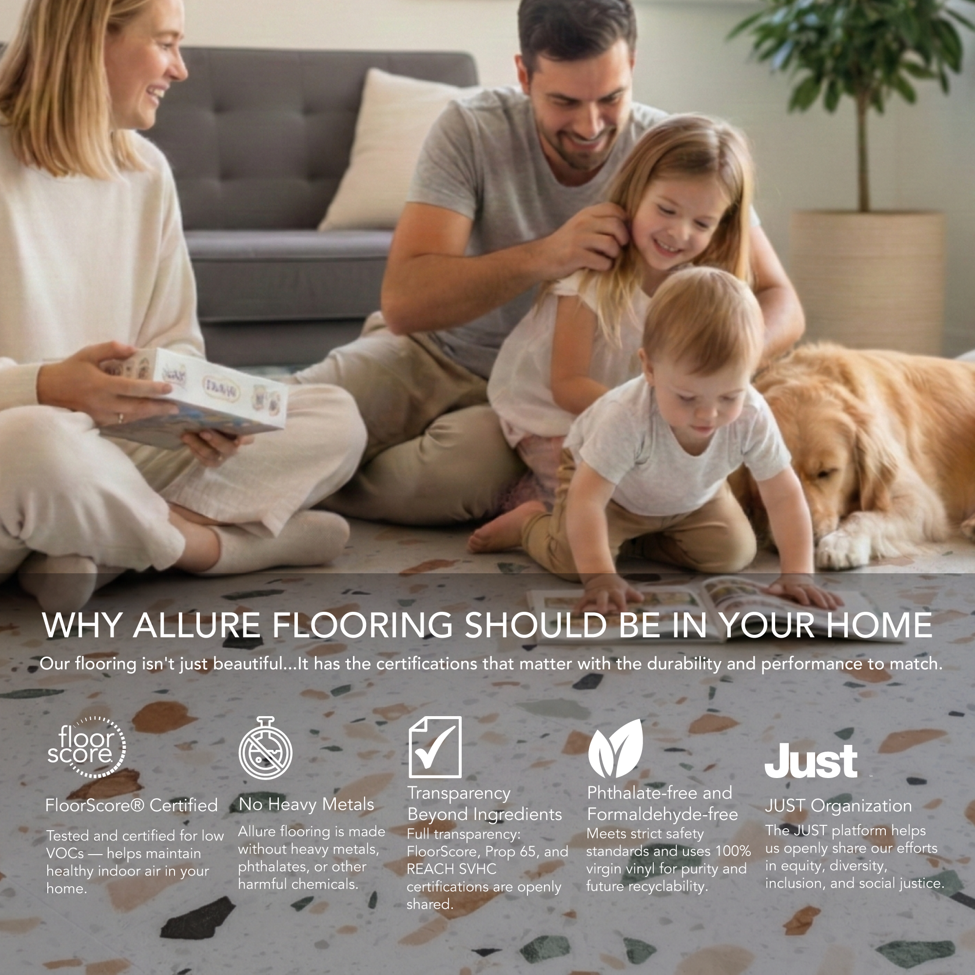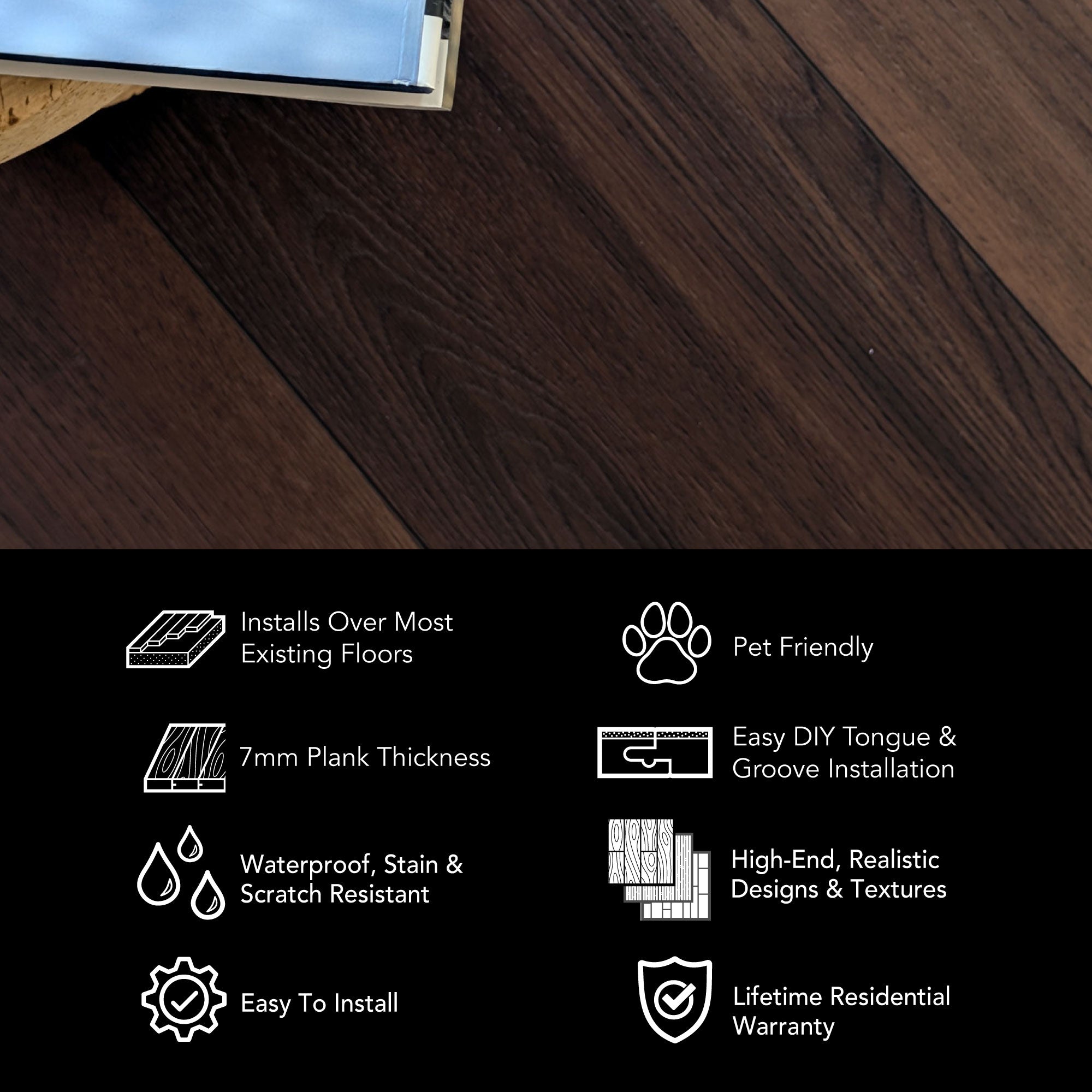 Whether it's our 8mm vinyl plank flooring or our 6.5mm terrazzo tiles, we've got the easy click together vinyl floors you need. Install your LVP flooring faster and easier with our tap-in click lock flooring system.