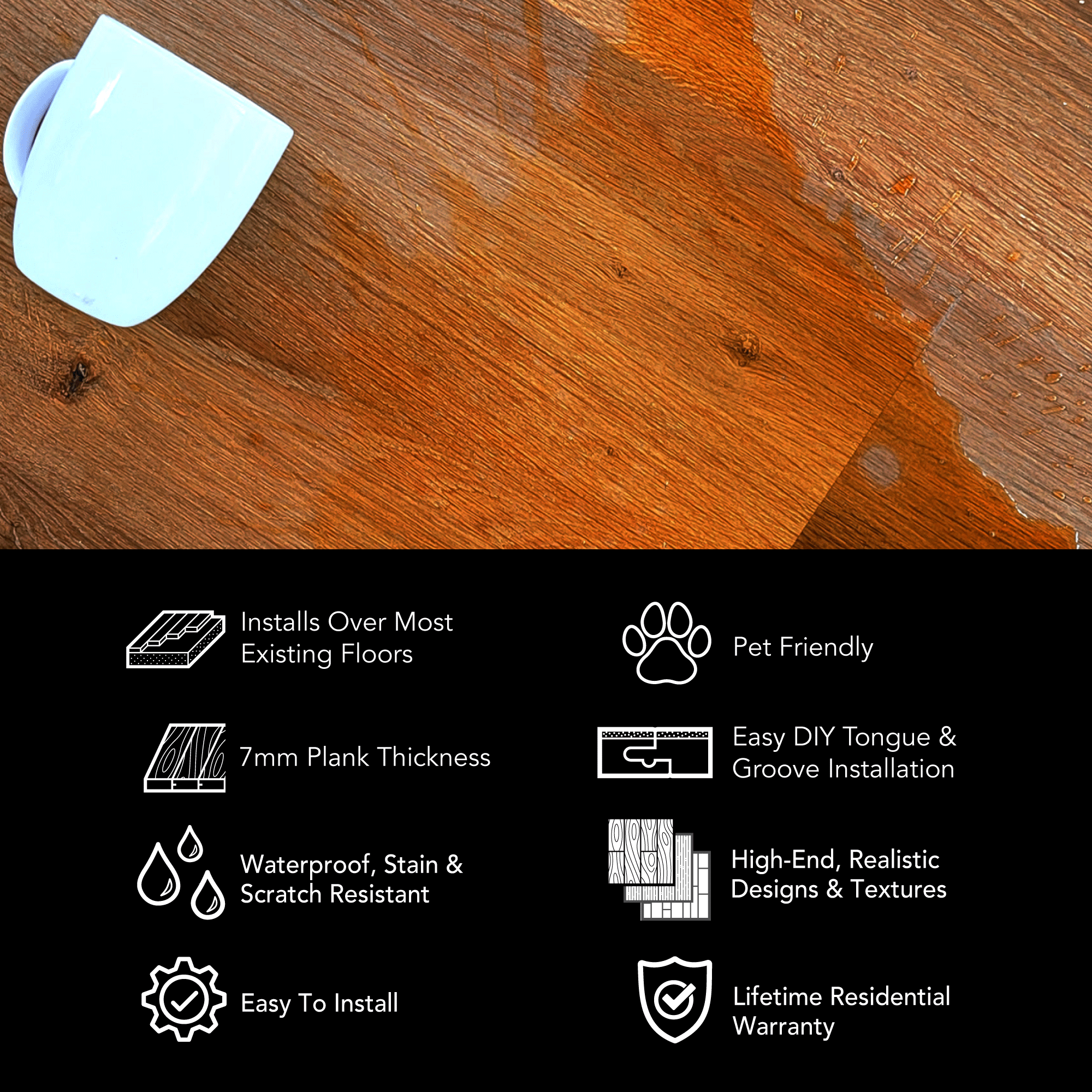 Wide vinyl plank flooring is engineered to create a more open, seamless appearance. With fewer seams and longer, wider boards, they visually expand rooms and enhance the flow of open-concept spaces. The extra surface area also showcases realistic wood grain patterns, giving you the upscale look of hardwood with the resilience of vinyl. Our wide vinyl plank flooring options are built for real life—offering waterproof performance, scratch resistance, and easy maintenance. Ideal for high-traffic areas like kitchens, living rooms, and basements, these floors are designed to stand up to kids, pets, and everyday wear while maintaining their beauty over time.