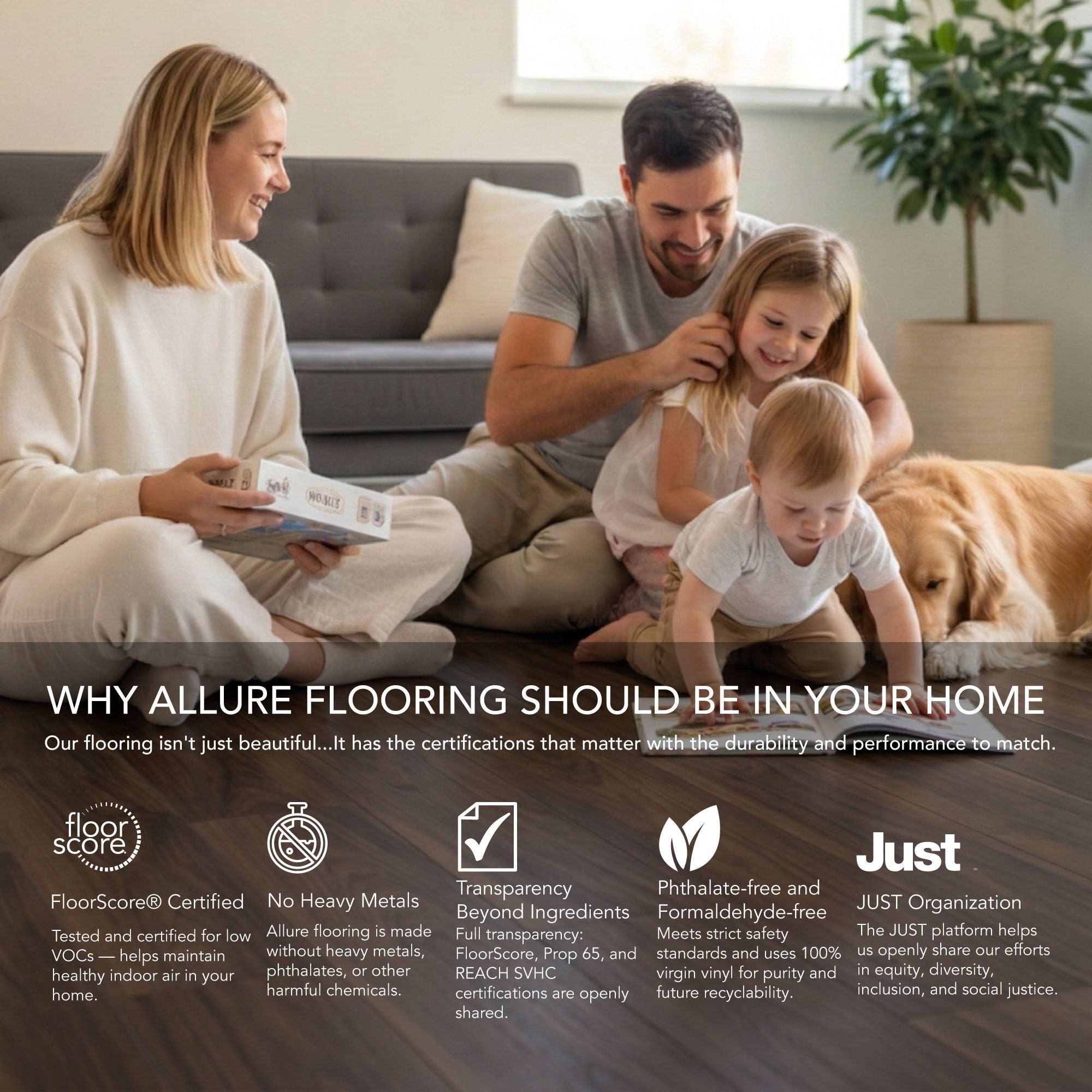 Allure flooring is free of heavy metals including lead, phthalates, and other chemicals linked to human health problems.