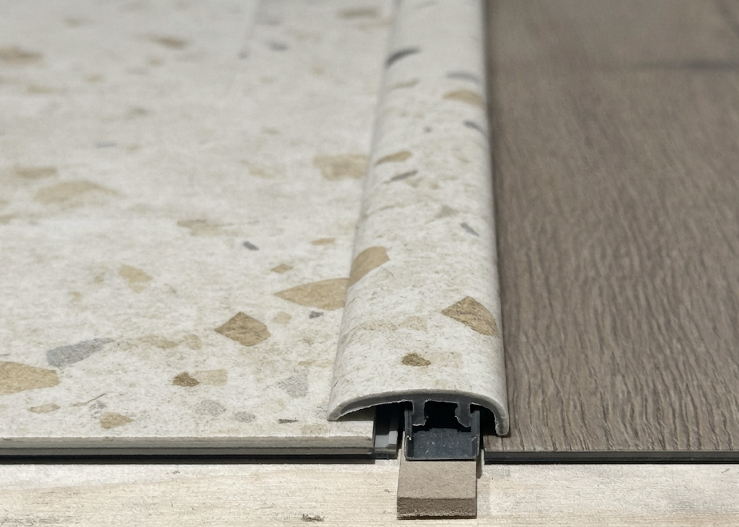 Flooring end cap molding creates a smooth transition from vinyl flooring to carpet, sliding doors, or even fireplaces—hiding expansion gaps for a clean, professional finish.