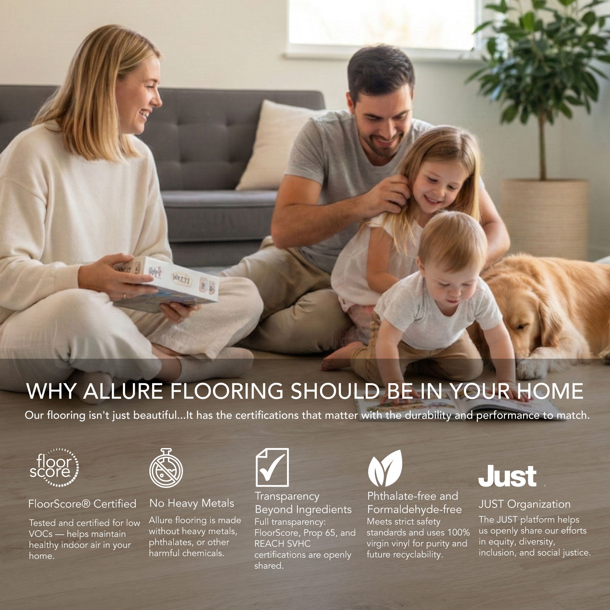 Allure flooring is free of heavy metals including lead, phthalates, and other chemicals linked to human health problems.
